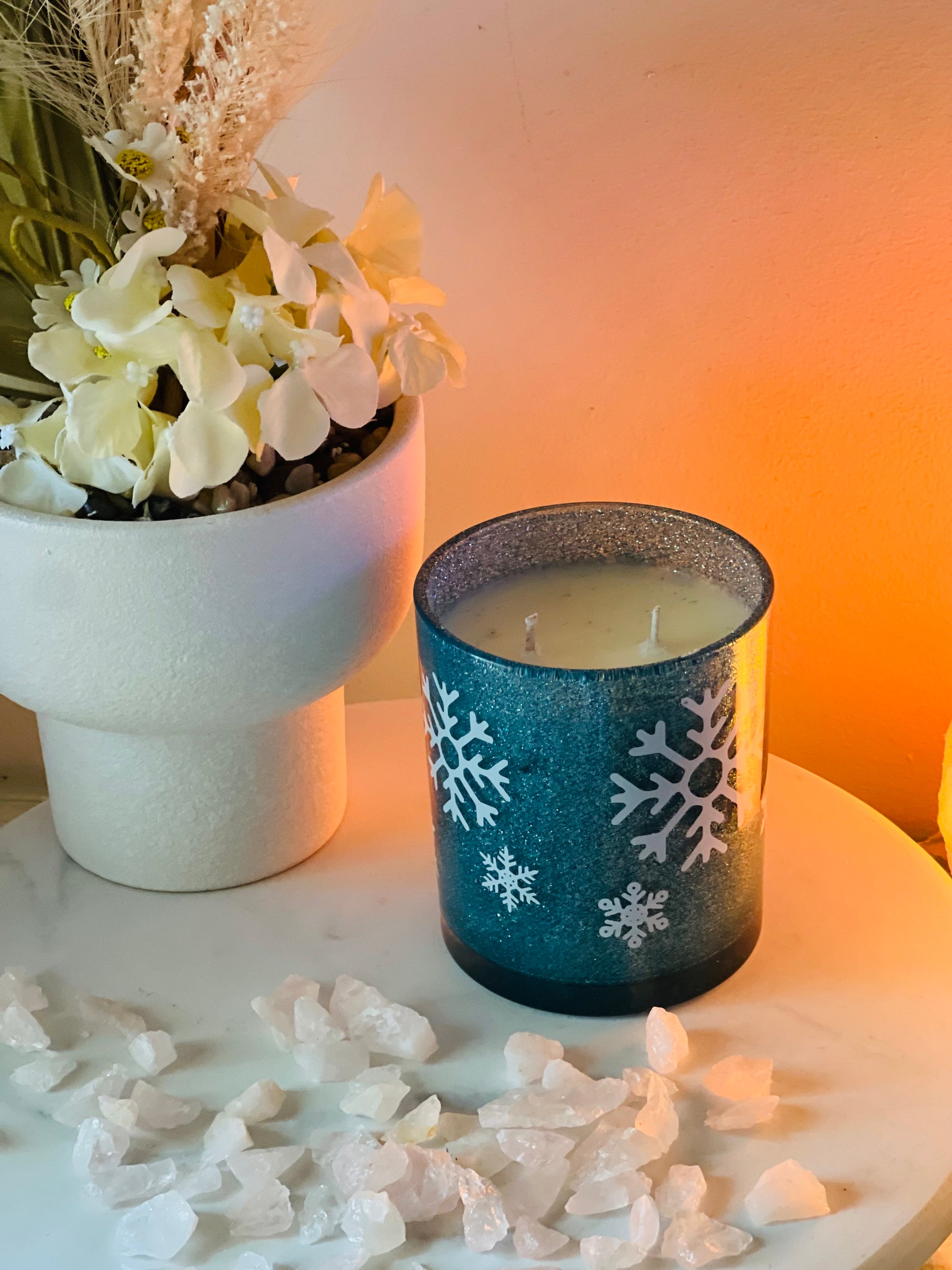 Wrap yourself in the soft, comforting scent of Snowflakes & Cashmere — a beautiful blend of creamy coconut, lilac, and violet, layered with warm caramel, amber, and cashmere musk.