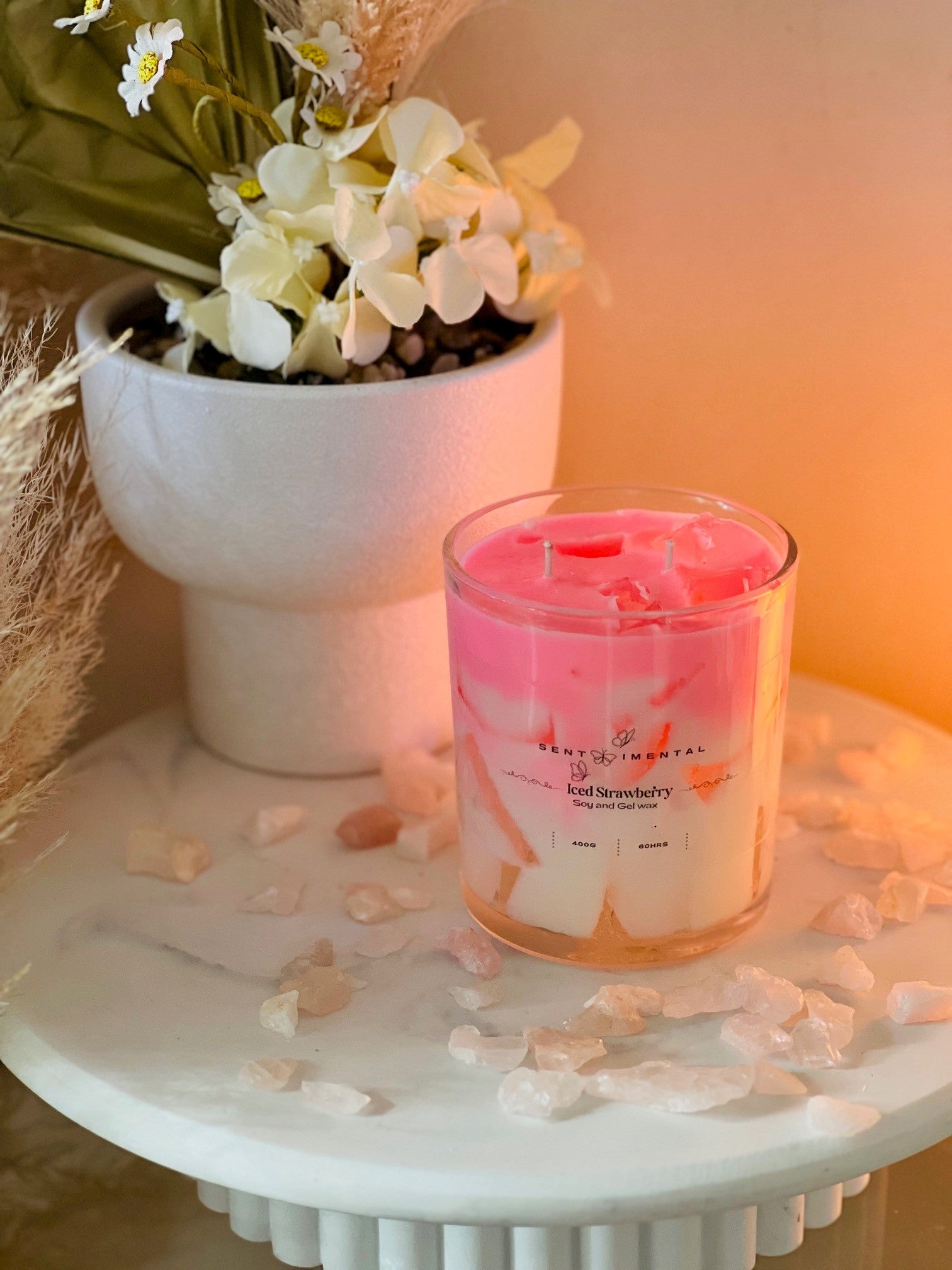 Sweet, juicy, and unapologetically bold – our Iced Strawberry candle is a fragrance that makes its presence known. Bursting with berry sweetness and layered with creamy vanilla, this one is strong enough to fill your whole space with its irresistible aroma. Perfect if you love a candle that really packs a punch.